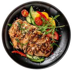 سینه مرغ مزه دار گریل شده، سبزیجات گریل، سس قارچ